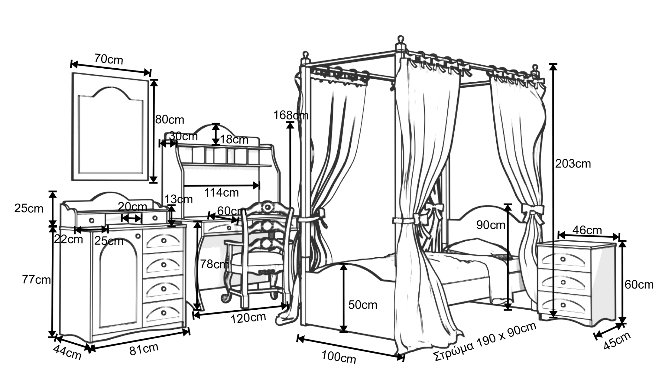 Παιδικό δωμάτιο ΚΛΑΣΙΚΟ 4 Ξύλο Λάκα Νo. 14 & Λάκα Νo. 29